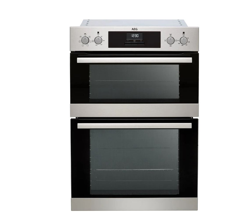 Cook two delicious meals at once with this AEG electric double oven. With a 66-litre capacity, you’ll have all the space you need to make a feast, whether it’s a Sunday roast for family and friends or a three-course dinner. And because the main oven has SurroundCook technology, hot air is sent to every shelf, so your food is cooked evenly on all sides – no more soggy Yorkshire puds. You can leave the scouring pad where it is too, since both ovens have an enamel interior which stops grease from sticking.