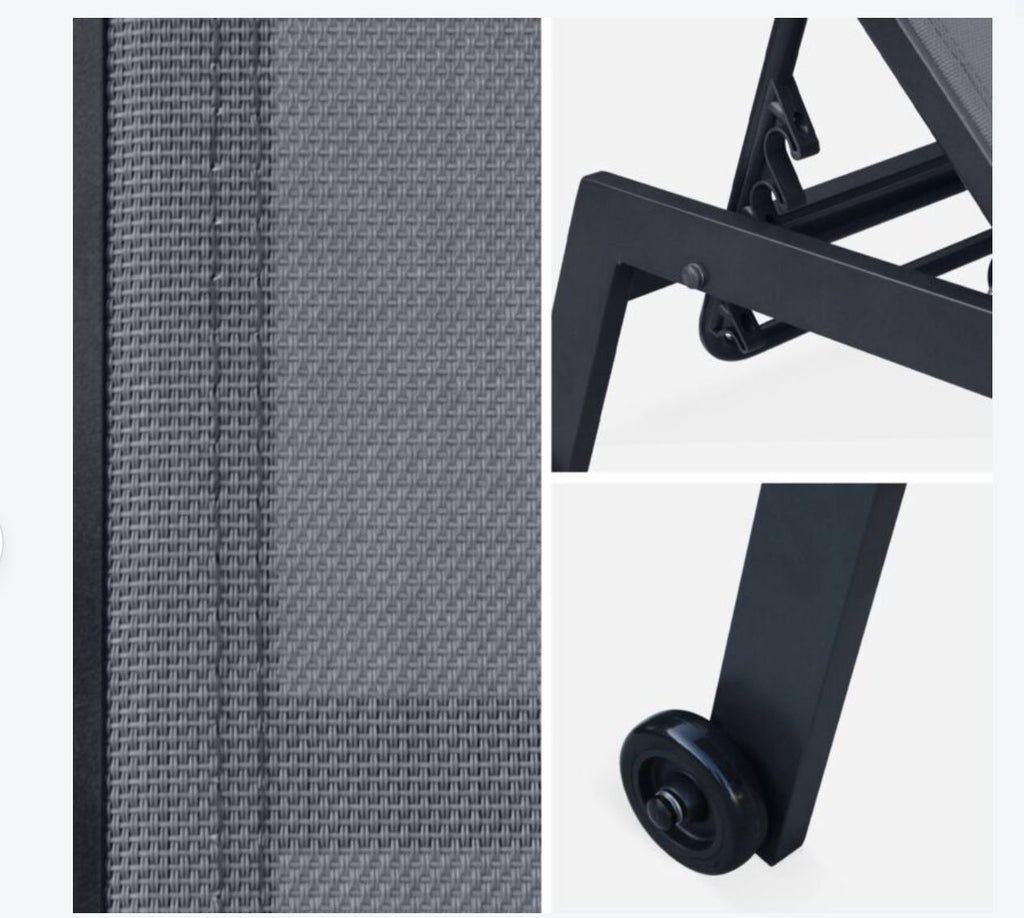 Fancy a bit of lazing around either on your terrace or in your garden? Our Elsa loungers are just the ticket. These aluminium and textilene sun loungers are sturdy and comfortable. With 5 positions the reclining backrest has something for everyone even those wanting a lie down fully. Loungers with wheels are easy to move around. Key features: Adjustable backrest With wheels easy to move Combining textilene and aluminium Complete light set Easy to store stacking loungers