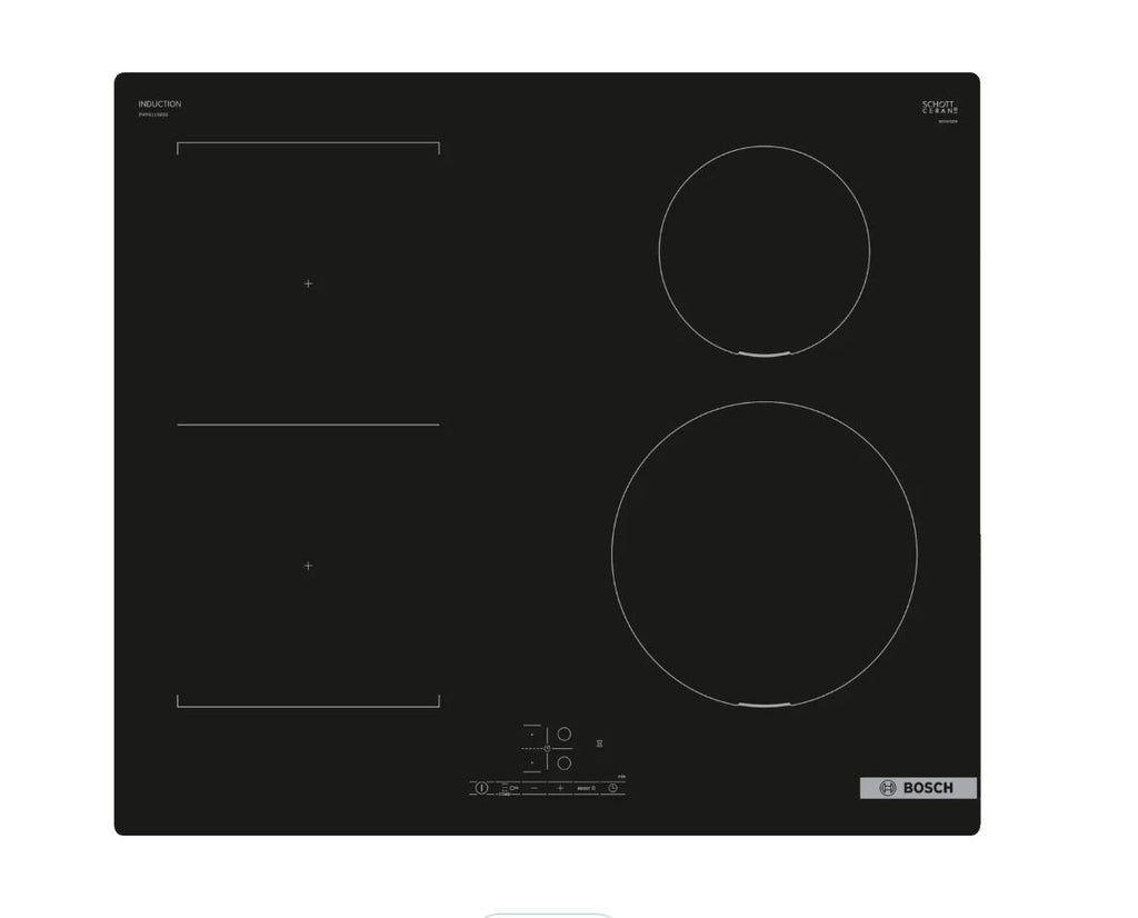 Cook tasty meals in no time with this Bosch induction hob. It has 4 zones, so you have loads of room for whipping up a tasty dessert and creating a delicious main. Or, if you like to make big batches to save on cooking, join two zones together with CombiZone. This creates a larger zone, giving you even more flexibility when it comes to mealtimes. Tummy grumbling? Hit the PowerBoost function to get that mac and cheese bubbling. Plus, TouchSelect lets you adjust settings with a quick tap, making it easy to choose the perfect temperature for those boiling baby potatoes.