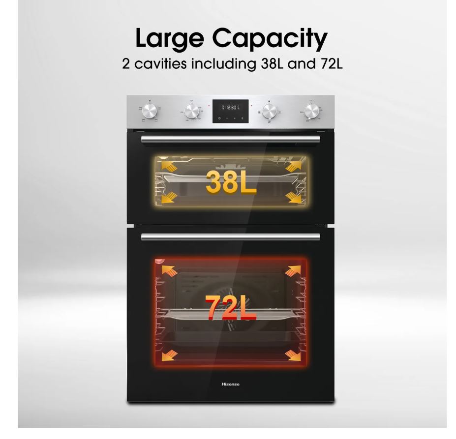 Create perfect dishes every time with this Hisense electric double oven. Because it uses a fan to cook your food, that baked feta pasta will be crispy on the top and creamy in the middle – great for impressing your date. And if you’ve got several things going at once, the handy timer will help you remember when to check on your roasted veg, so there’ll be no burnt bits. There’s no need to get the scrubber out either, as the Enamel interior is made with a greaseproof coating, making it super easy to clean.