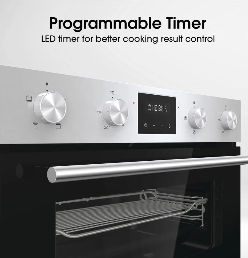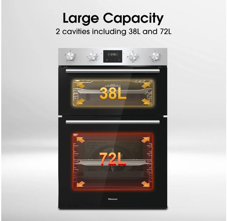 Enjoy making your favourite recipes for the family with this double oven from Hisense. It has a 72-litre main capacity, making it great for large households – you’ll have all the room you need for that large turkey or roast chicken. The main electric fan oven gives you fast and efficient cooking as it evenly spreads heat for consistent results – they’ll come out nice and crisp all over. You can also relax by setting the timer to turn the oven off as soon as your lunch or dinner is ready, so that you never accidentally overcook a dish again. And when you’re done, cleaning will be a breeze thanks to the grease-proof enamel interior. All you need to do is give it a quick wipe and you’re done.