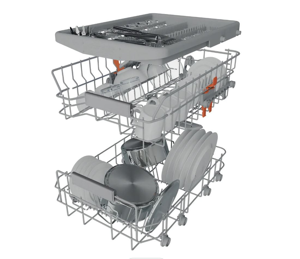 Bring the sparkle back to your dishes and cutlery with this Hotpoint slimline dishwasher. In a hurry? The Rapid 30 cycle will have everything clean in just half an hour. No waiting around to get dinner served. And if you’ve been cooking with bulky pots and pans, the Height Adjustable Top Basket will make sure there’s always room to fit them in, so you won’t have to rely on leaving them to soak in the sink for hours on end. And there won’t be any need for a tea towel once this model’s done its work. That’s because ActiveDry opens the door automatically at the end of a wash, so fresh air can do the drying naturally. More time for you to relax instead.