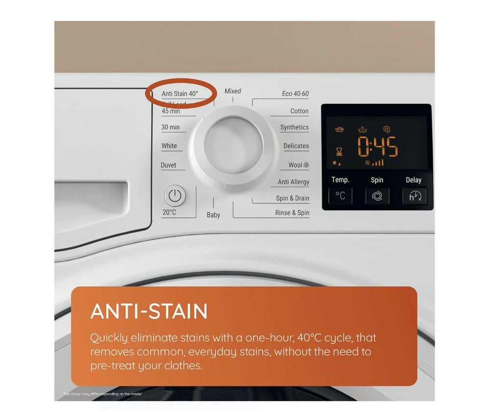 You can get all your laundry spotless in one go with this spacious Hotpoint washing machine. Kids manage to cover every white shirt in mud? Not to worry, the Anti-Stain cycle will wash away any marks without any fussing around with pre-treatment. But if you just popped the machine on and realised a school uniform escaped the load, quickly hit Stop & Add and you’ll be able to pause the programme to chuck in any missing items. No need to wait for another laundry day.