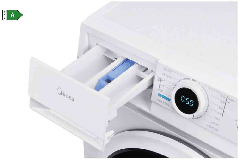 Take full control of laundry day with this Midea 10kg washing machine. When time’s not on your side, the 15’ Quick Wash will get a small load done and dusted quicker than you can say “where’s my favourite shirt?” Bacteria will have nowhere to hide either, with Steam Care releasing a hot mist into the drum to see off any unwanted allergens and germs. It’s so good at getting rid of hidden nasties that it’s been awarded the Golden Virus Hygiene Seal, which means it’s been intensely tested to make sure it does what it promises. Seriously cleaner clothes are just a wash away.