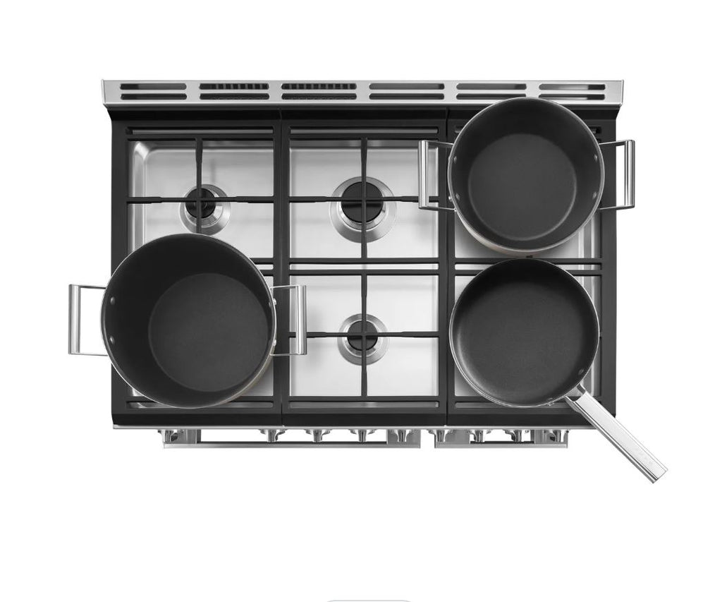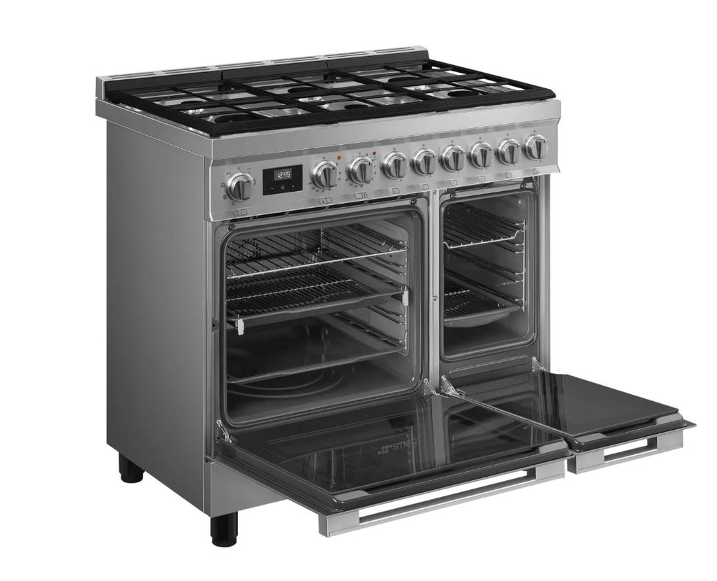 If you love eating good food (and who doesn’t?), then this Smeg range cooker will be a lifesaver. The 2 ovens let you get cracking with all those delicious dishes you’re famous for with your friends. Hosting on a new level. And you won’t fight for space in the main oven either, as it’s big enough for baking a large batch of cookies or brownies. Or both. When it’s time to clean, just wipe down the interior. With the enamel coating, grease doesn’t stick to the walls, so you can wave goodbye to scrubbing. There’s also a hob with 6 zones, meaning you’ll have several pans going at the same time. Sautéed veggies, juicy steaks, and salmon fillets. Go all out – there’s room, after all.