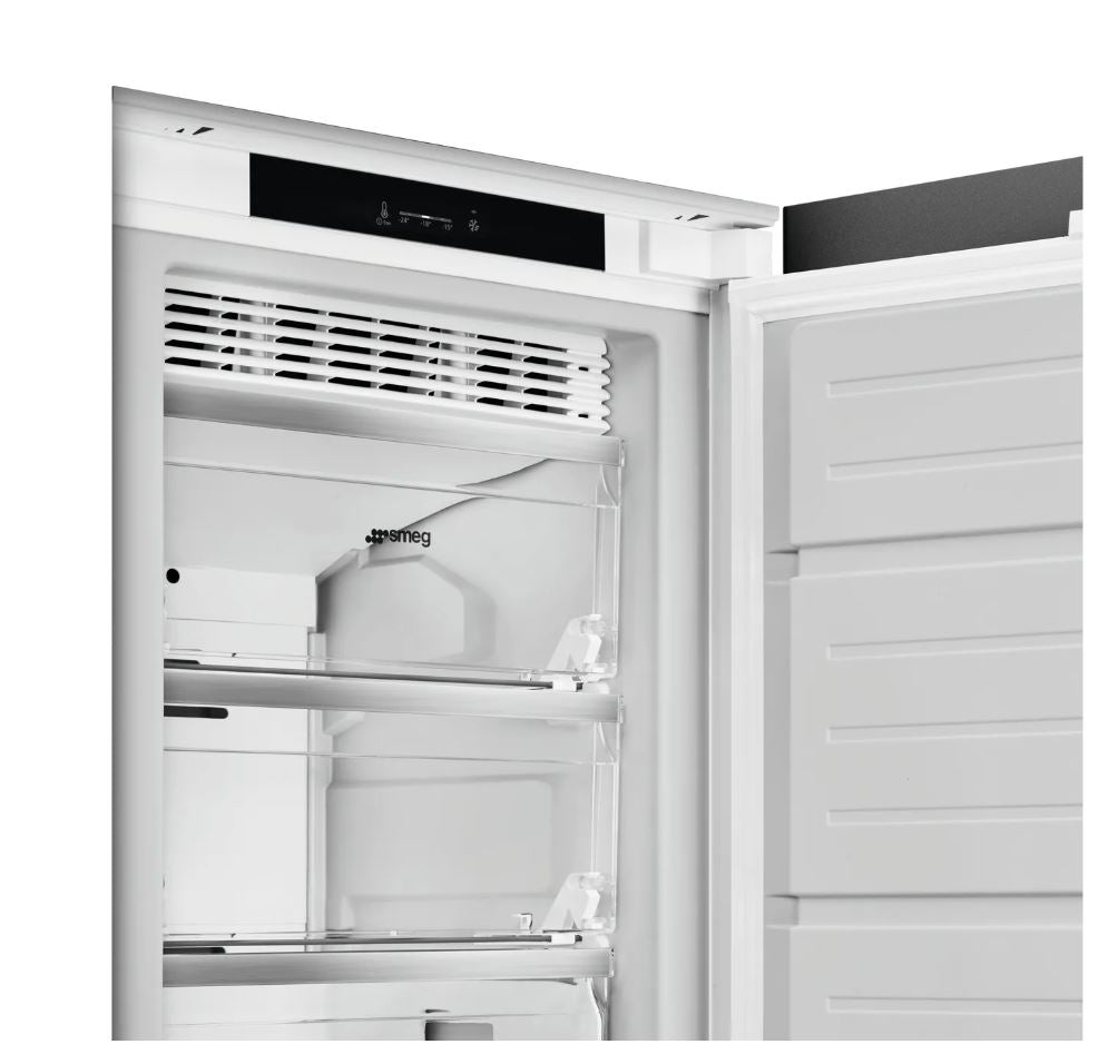Your frozen faves are in good hands with this Smeg built-in upright freezer. It’s got 7 compartments, so you’ll have plenty of space to fit all your go-to ingredients and treats. The reversible door means it’ll fit wherever you need it to, just install it to open on the side that suits your layout best. No awkward manoeuvres for you. And if disaster strikes and the power cuts, you won’t need to relocate everything since it’s power failure safe for up to 10 hours. That’ll help you keep your cool, too.