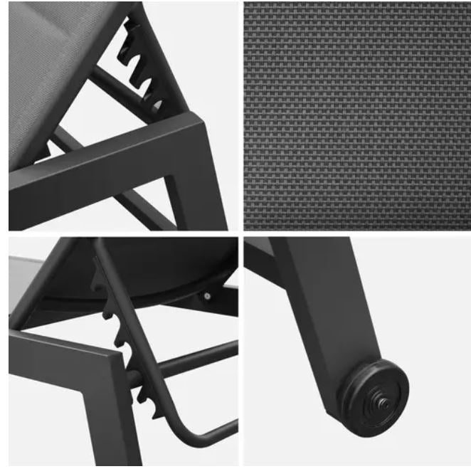 Solis deckchairs are perfect for enjoying the sun. For your comfort, they adapt to your desires. Their backrests recline in 6 positions, including one reclined position. Made from aluminium and textilene, these sun loungers are robust. Textilene is suitable for outdoor use and will not weather. What's more, this padded fabric adapts to your body and lets it breathe in the heat. Aluminium is ideal because it doesn't rust. For an attractive finish, the aluminium frame is coated with epoxy paint. Practical, Solis deckchairs have two castors for easy movement.